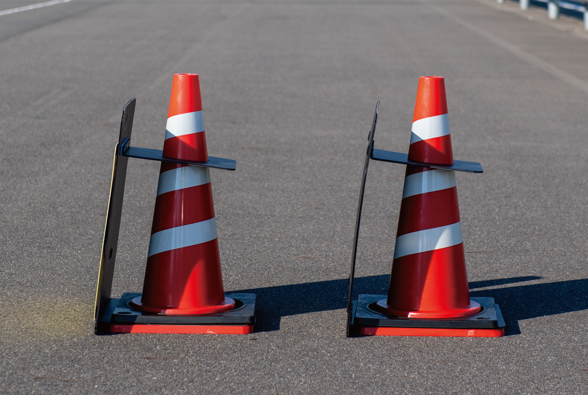 イエロー高輝度の上に黒色矢印を表示することで視認性を確保しています。本体は1kg未満と軽量で、カラーコーンに装着して使用します。コーンベットを用いて、用途に合わせて重量を調整することができます。