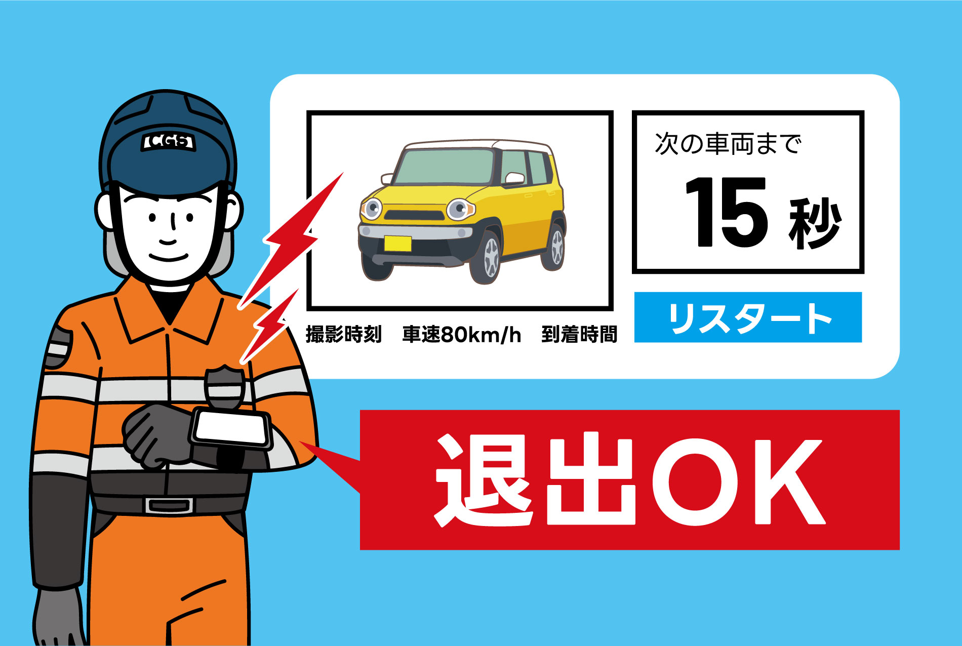 事故の起こりやすい高速道路の「工事車両の退出時」にAIを活用した退出支援システムを導入することで、高速道路作業中のヒューマンエラーによる事故を未然に防ぎ安心で安全な工事車両の退出に繋がります。