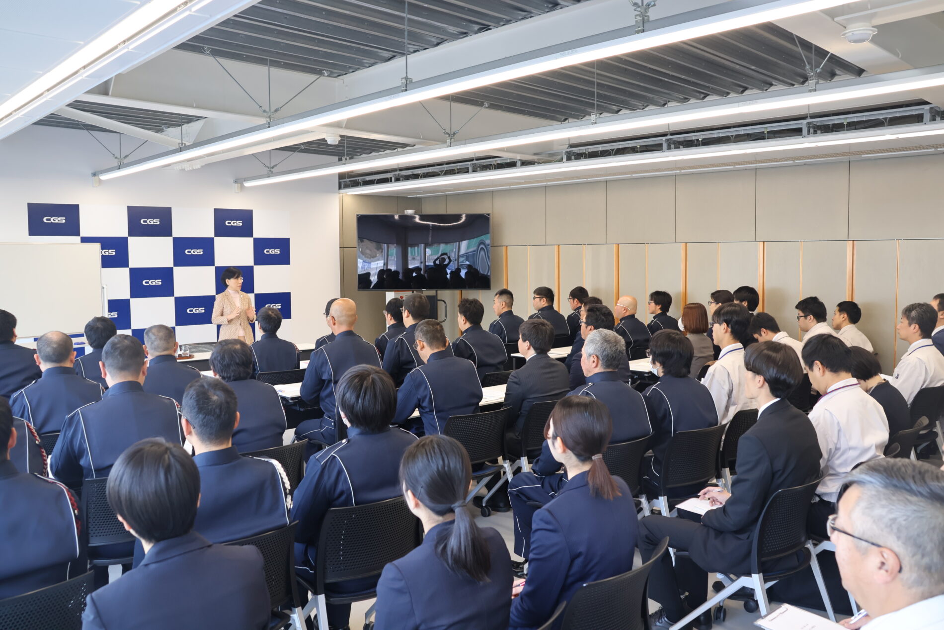 CGS5名はそれぞれ担当業務に関連したテーマでプレゼンテーションを行い、拠点長や役員からのフィードバックや、その後に行われた豊島社長によるプレゼンテーションを通じて、相手に伝えるための構成や表現、話し方について学びました。