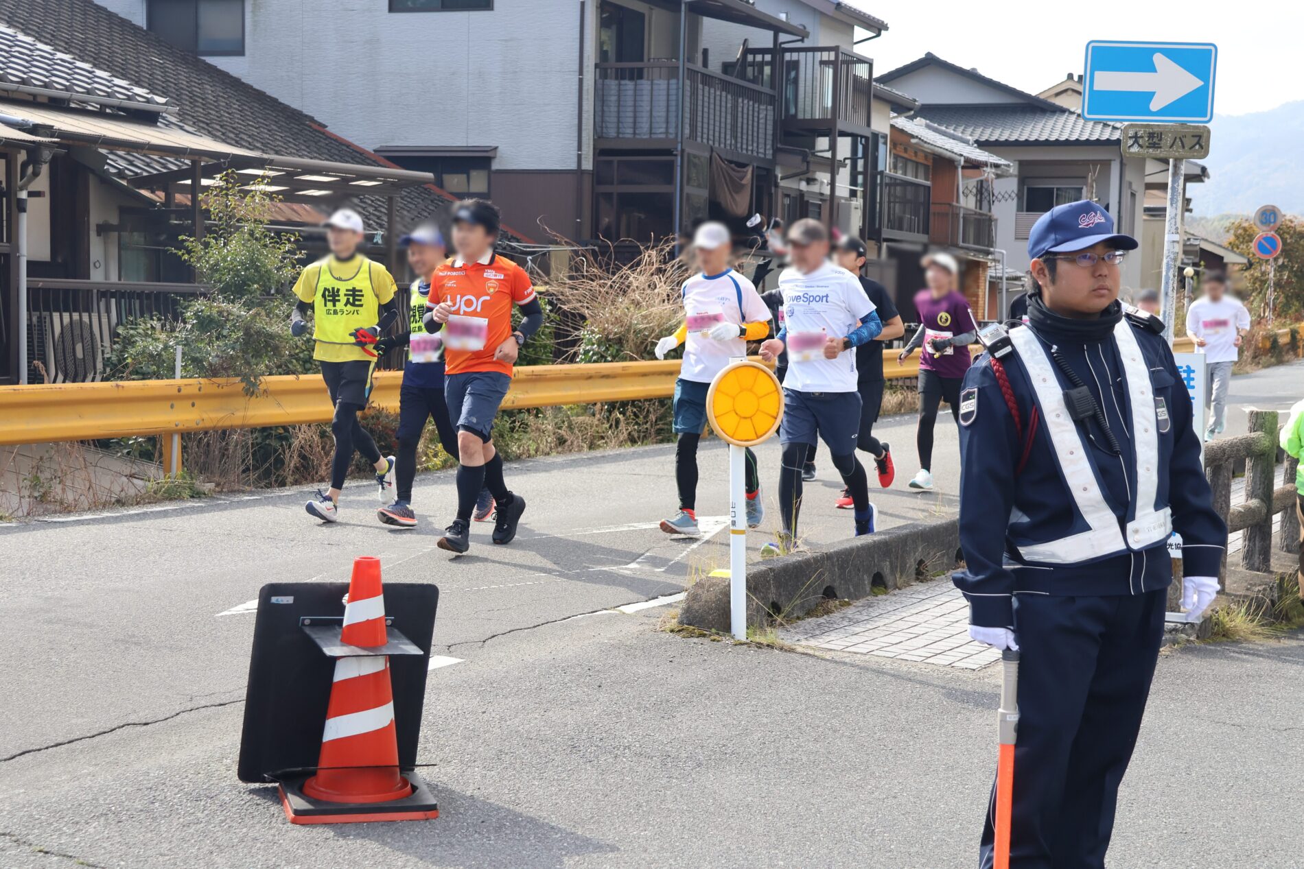 当社は、コースとなる道路の交通規制をはじめ、駐車場の誘導、ランナーと観客が行き交う場所での雑踏警備などを担当。